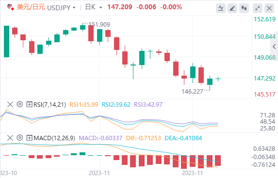 从技术角度来看,周一美元/日元对在146.20区域附近找到了一些支撑并吸引了买家,这代表了7月至10月反弹38.2%的斐波那契回撤水平。然而,随后的上涨未能通过100天SMA的关键支撑断点,值得看涨交易员谨慎行事。也就是说,持续走强可能引发空头回补反弹,并使美元/日元对收复148.00大关。动量可能会进一步扩大,但可能会在148.25-148.30水平屏障附近保持上限。