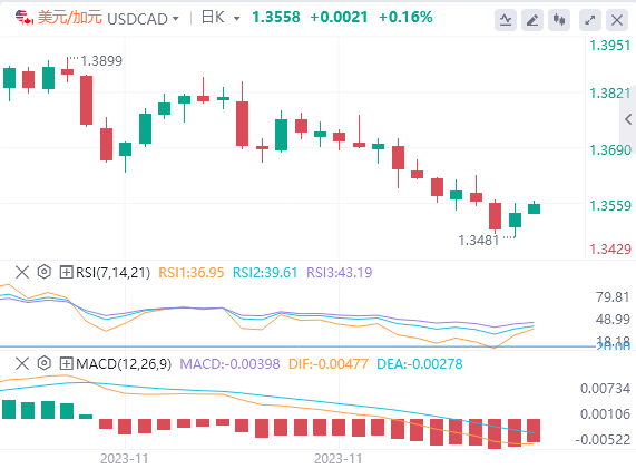另一方面,尽管联准会鸽派预期阻止美元的进一步上涨,但全球避险情绪还是为美元提供了一些支撑。市场参与者现在似乎相信,美国利率已经见顶,联准会最快将於2024年3月开始放宽货元政策。这导致美债殖利率出现新一轮下跌,阻碍了美元多头展开激进押注,并可能阻止美元/加元大幅上涨。