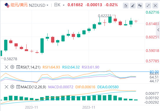 此外,纽储行维持鹰派立场提振纽元/美元,并成为纽元/美元的“顺风”。上周,纽储行将现金利率维持在5.5%,但强调通胀率仍然处在过高水平,如果物价压力没有缓解,可能需要进一步收紧政策。