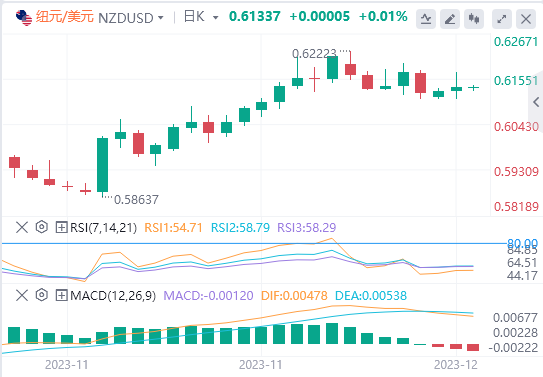 尽管纽元/美元近期交投持平,但纽元/美元仍位于200日均线上方,处于0.6100关口上方,纽元/美元10月底从0.5800附近的年内低点跳空后几乎没有出现回调。50日均线正加速上升,接近看涨范围,逼近0.6000主要关口,因为买盘仍遇阻高位。