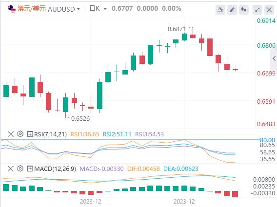 1月5日,周五亚市早盘,澳元/美元徘徊在0.6700附近。