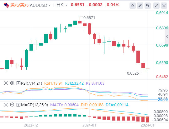 在澳元方面,在澳大利亚储备银行(RBA)11月会议上加息25个基点(bps)后,目前的现金利率为4.34%。澳洲联储维持谨慎立场,预计今年只会降息两次,而美国金融市场已经消化了到今年年底降息六次的预期。