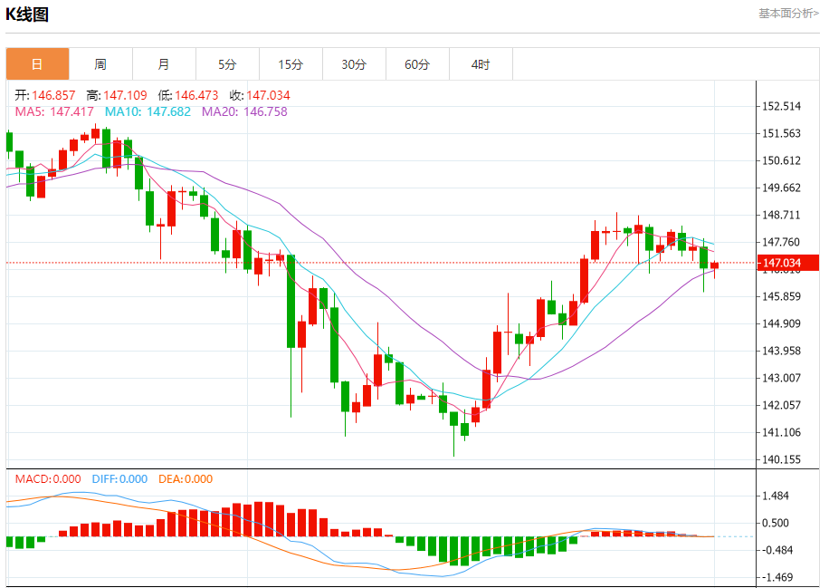 周四盘中,美元/日元报147.047,涨幅0.12%。