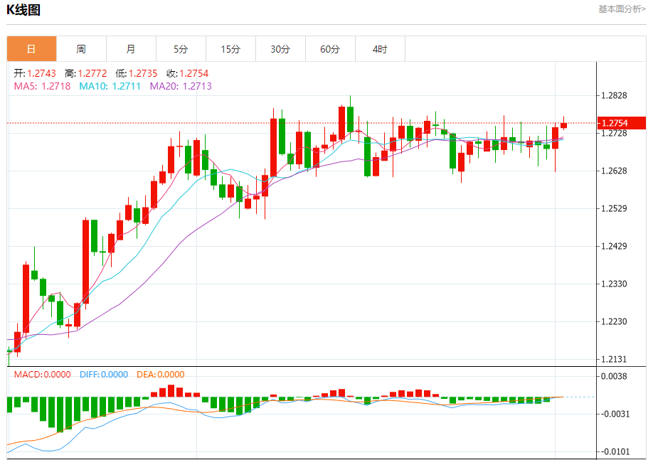 周五盘中,英镑/美元报1.2755,涨幅0.09%。