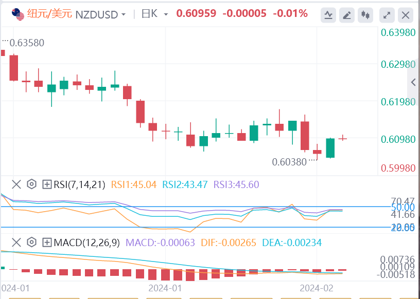 周日晚间,美联储主席鲍威尔表示,美联储今年仍将降息三次,预计最早将于5月开始降息。也就是说,美联储官员若释放鹰派言论可能会提振美元,并限制纽元/美元上行空间。芝加哥商品交易所美联储观察工具显示,3月份降息的几率目前为15%,5月份会议降息的几率上升至50%。