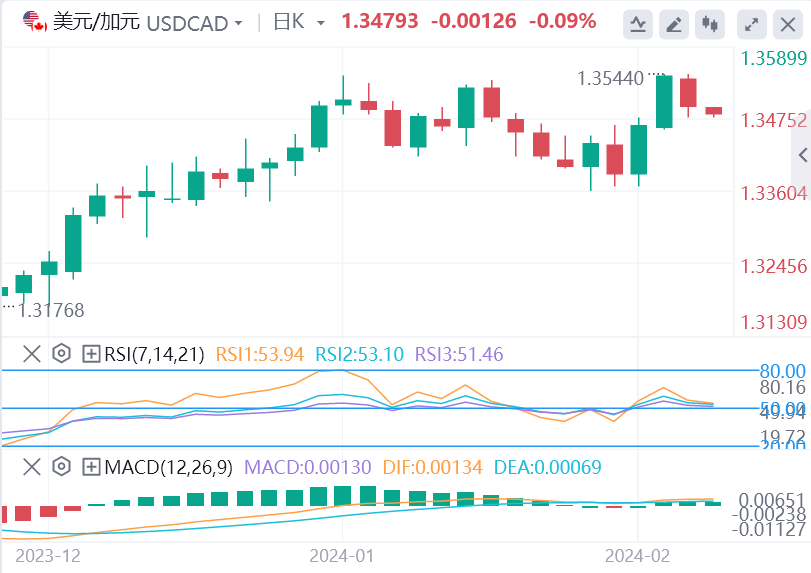 隔夜美国国债收益率回落促使美元获利回吐,尤其是在非农就业数据公布后上涨之后,尽管美联储(Fed)的鹰派预期应有助于限制更深的损失。即将到来的美国宏观数据表明,经济状况良好,为美联储提供了更大的空间,可以在更长时间内保持较高的利率。此外,近期一系列有影响力的联邦公开市场委员会(FOMC)成员的鹰派言论进一步迫使投资者继续下调对2024年激进政策宽松的预期。这可能会成为美国债券收益率的利好因素,这有利于美元多头,并应该会为美元/加元货币对提供支撑。