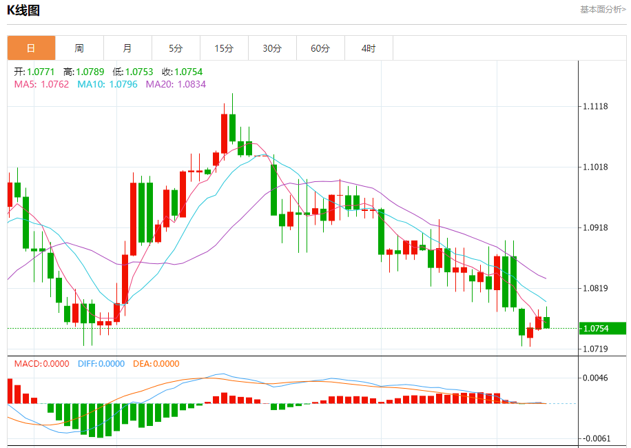 周四盘中,欧元/美元报1.0755,跌幅0.16%。