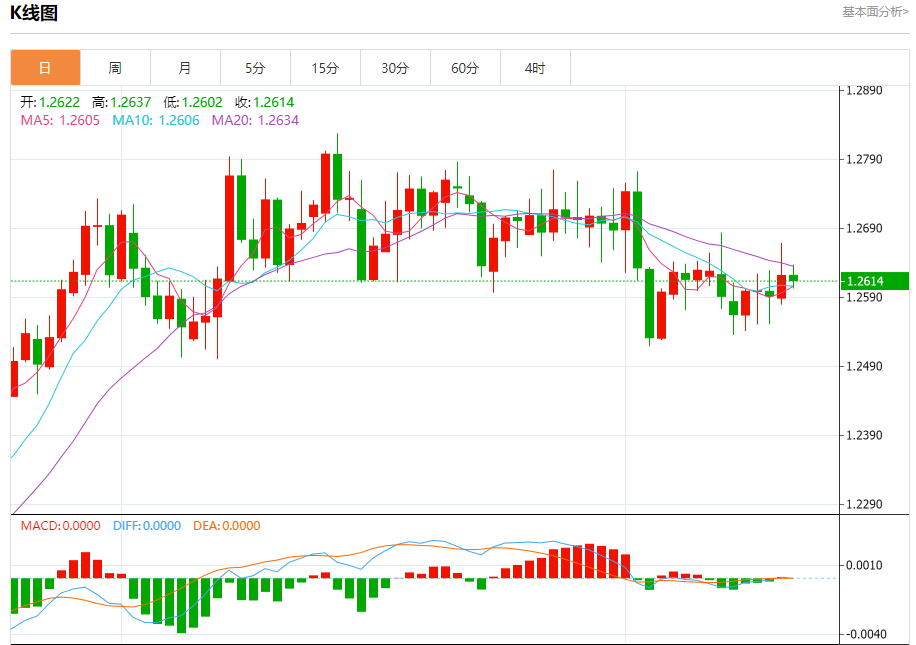 周三盘中,英镑/美元报1.2616,跌幅0.05%。