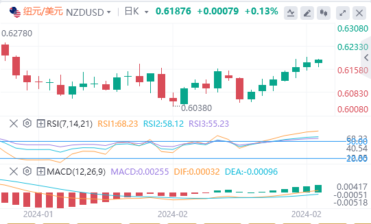纽元/美元方面,新西兰统计局周三公布,新西兰1月十二个月贸易账收窄至-125亿纽元,前值为-136.2亿纽元(修正值为-135.7亿纽元)。新西兰1月进口为59.1亿纽元,前值为62.2亿纽元。新西兰1月出口为49.3亿纽元,前值为58.5亿纽元。