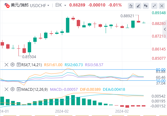瑞士方面,瑞士1月份的年通胀率意外下降,这可能会说服瑞士国家银行(SNB)在3月份的会议上降息。瑞士联邦统计局将于周一晚些时候发布该国2月份的消费者价格指数(CPI)。这些数据可能会为美元/瑞郎货币对提供新的催化剂。