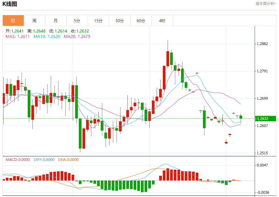 支撑位:1.2605 1.2585 1.2565