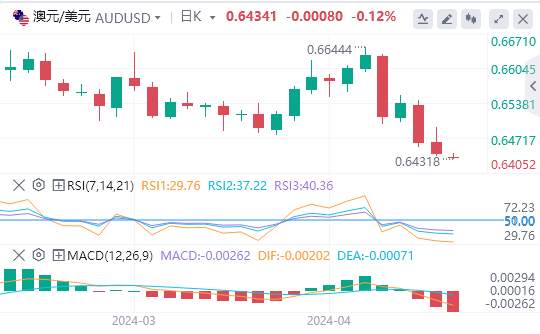 澳元/美元跌破0.64美元关口可能会使0.62713美元的支撑位进入视野。鉴于14周期的每日RSI读数为38.31,澳元/美元可能会在进入超卖区域之前跌破0.64美元的水平。