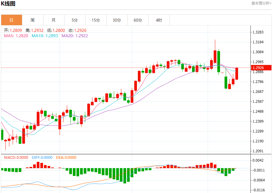 周四盘中,英镑/美元报1.2927,涨幅0.88%。