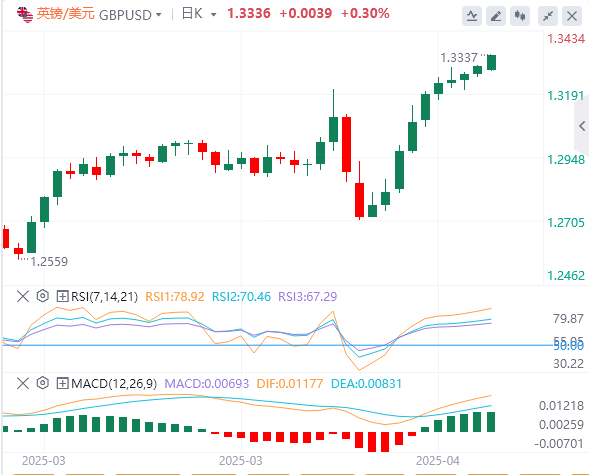 在特朗普宣布对英国商品征收10%的关税,对汽车、钢铁和铝的进口征收25%的关税后,斯塔默正在寻求与美国达成协议。与此同时,围绕美英贸易谈判的乐观情绪在短期内继续支撑英镑兑美元。
