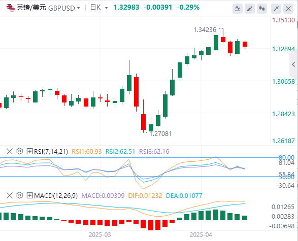 英镑/美元在周三的欧洲时段下跌至1.3300附近。该货币对的前景仍然坚挺,因为所有短期到长期指数移动平均线(EMA)都在走高。