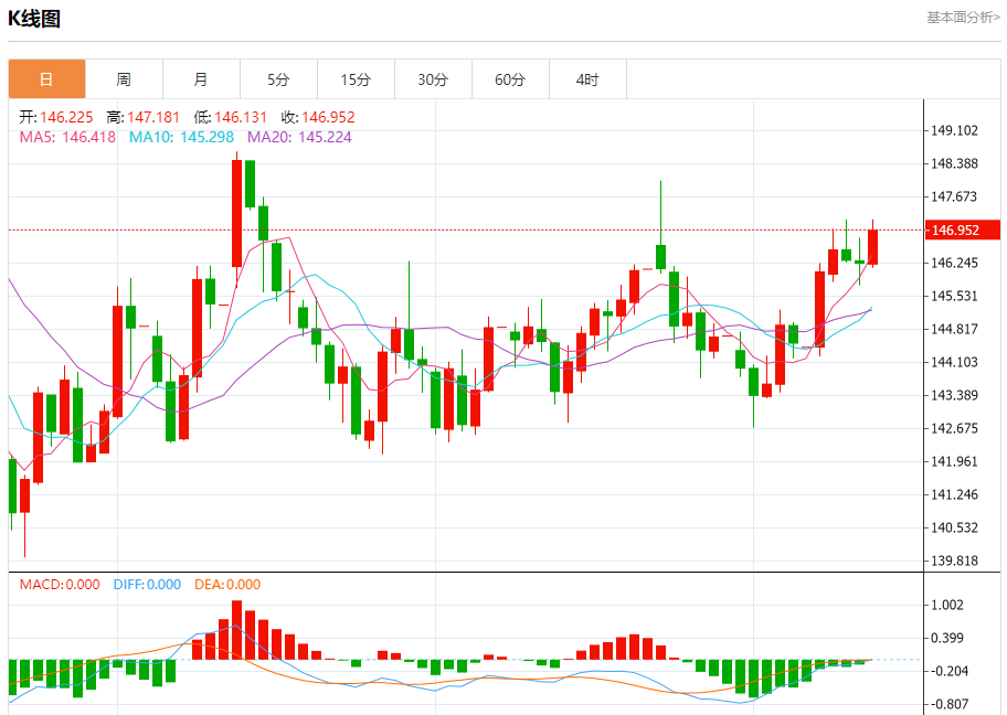 周五盘中,美元/日元报146.951,涨幅0.48%。