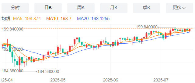 我们建议等待确认突破当前障碍,以确认其准备重新开始看涨尝试,这可能以200.35水平为目标,而未能突破则可能有助于重新开始看跌修正尝试,迫使其通过达到197.45遭受一些损失,然后试图压近看涨通道的支撑位197.15。