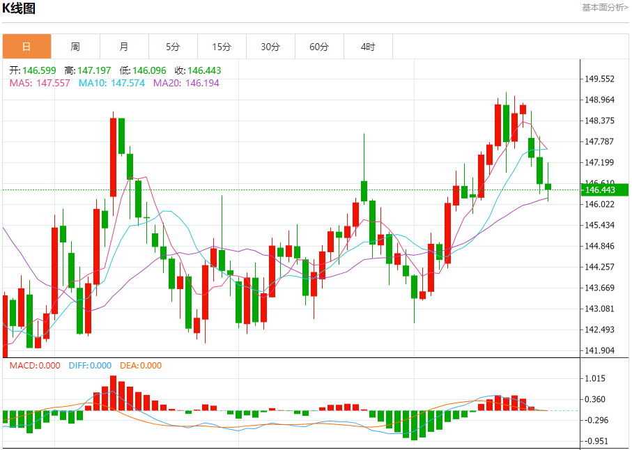 周三盘中,美元/日元报146.476,跌幅0.11%。