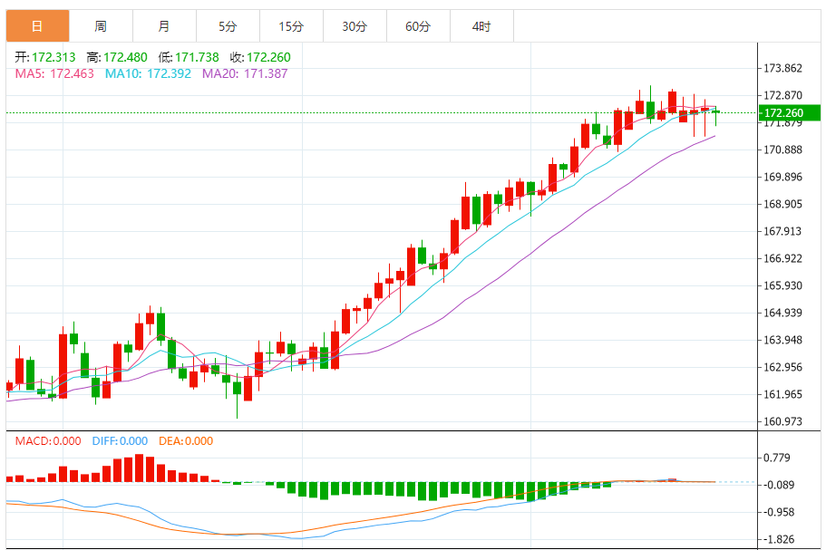 今天的预期交易区间:在171.45支撑和173.85阻力之间。