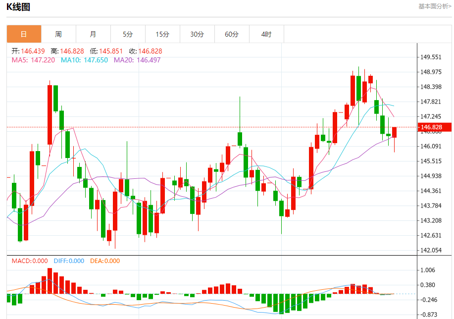 周四盘中,美元/日元报146.844,涨幅0.31%。