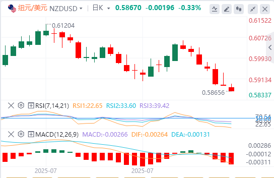 美联储主席杰罗姆·鲍威尔周三表示,现在说央行是否会在9月的下一次会议上降息还为时过早。鲍威尔补充说,目前适度的限制性货币政策并没有阻碍经济,并且处于管理关税和通胀持续不确定性的正确位置。再加上通胀仍然具有粘性,表明美联储将在更长时间内维持高利率,这有助于美元站在5月下旬以来的最高水平附近,并导致新西兰元/美元货币对下跌。
