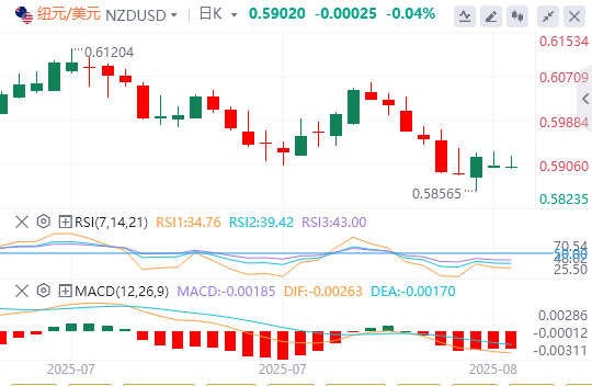 美国财政部长贝森特表示,世界两个主要经济体之间的贸易休战“有可能”延长,但在8月12日的最后期限之前,市场仍保持谨慎。中美贸易紧张局势升级的任何迹象都可能对新西兰元造成一些抛售压力,因为中国是新西兰的主要贸易伙伴。
