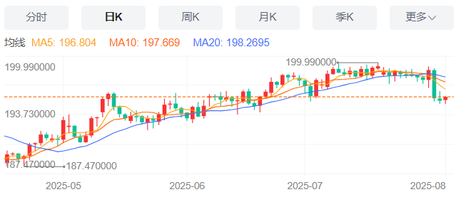 周二,英镑/日元上涨0.24%至195.88附近。