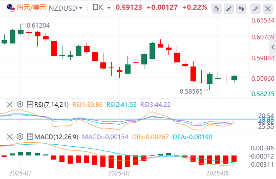新西兰储备银行(RBNZ)自2024年8月以来已将现金利率下调225个基点(bps),但上个月暂停以评估贸易关税和通胀小幅上升的影响。尽管如此,新西兰劳动力市场的持续疲软将进一步加强新西兰联储在8月会议上将现金利率下调25个基点的理由。反过来,这可能会限制新西兰元兑美元在短期内的上涨空间。