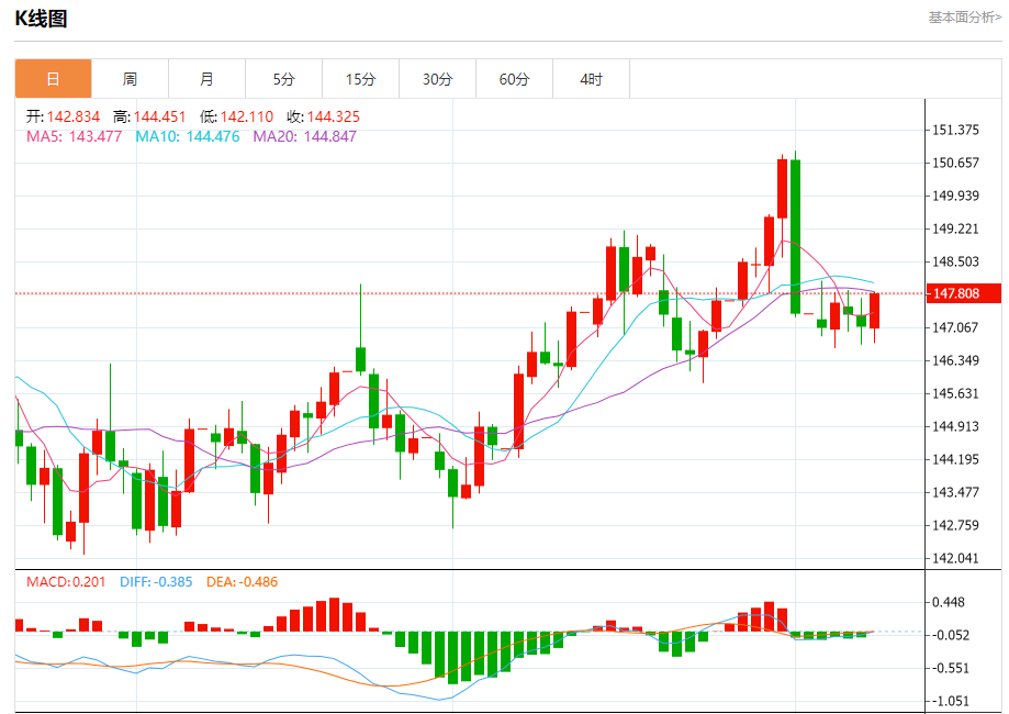 周五盘中,美元/日元报147.807,涨幅0.47%。
