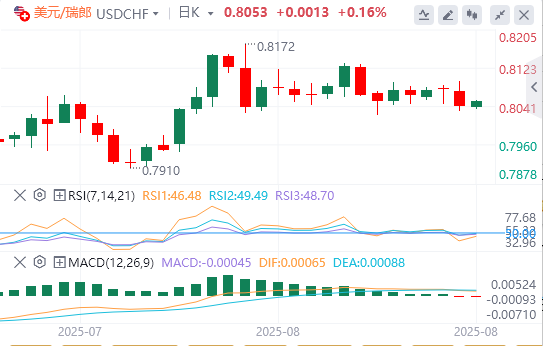 瑞士通胀率仍低于瑞士国家银行(SNB)2%的目标,提振了进一步降息的预期,并可能回到负值区域。此外,美国新对瑞士进口商品征收39%的关税将给瑞士出口驱动型经济带来沉重压力,并可能增加瑞士国家银行(SNB)进一步放松政策的压力。