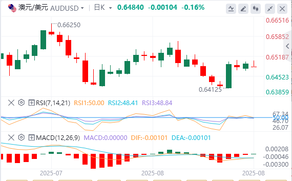 从好的方面来看,成功突破0.6500心理关口可能会支持澳元/日元在8月14日触及的月度高点0.6568附近探索区域。进一步上涨可能会促使该货币对测试7月24日创下的9个月高点0.6625。