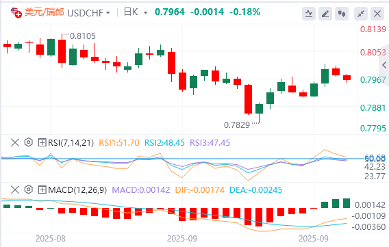 9月29日,美元/瑞郎连续第二个交易日扩大涨幅,交投于0.7960附近。由于美国政府关门风险推动的市场谨慎,美元继续下跌,该货币对贬值。