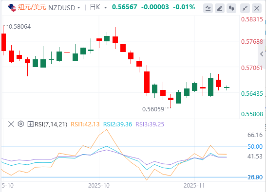 新西兰储备银行在10月会议上将官方现金利率(OCR)下调至2.5%,此前2025年第二季度国内生产总值(GDP)收缩幅度超出预期0.9%。普遍预期下一次会议将于2025年11月26日进一步下调25个基点至2.25%。新西兰储备银行已在2025年实施了一系列降息措施,试图刺激陷入困境的经济。