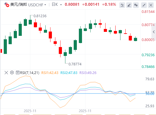 在美元方面,美国总统唐纳德·特朗普周二表示,他计划明年初宣布人选,接替杰罗姆·鲍威尔出任美联储主席。路透社报道,白宫经济顾问凯文·哈塞特已成为下一任美联储主席的领先人选。预计哈塞特将推动更多降息,这可能会对美元兑瑞郎构成一定的抛售压力。根据芝加哥商品交易所FedWatch工具的数据,下周会议降息的概率接近89%。
