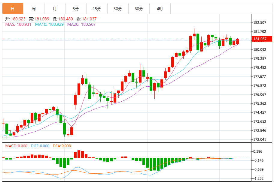 日线图中,欧元/日元报180.90。该货币对守住20日均线180.50和100日均线175.53上方,保持上行偏向。100日均线指数上升,强化了基础需求。RSI位于59.40(中性至多头),确认了无超买风险的稳定动能。当前的直接障碍位于布林带上方182.02,初始支撑位与下轨178.98对齐。