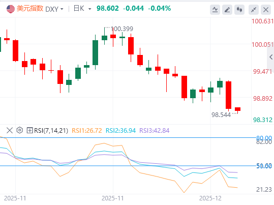 在最新的经济预测中,美联储官员预计明年仅会降息一次,与9月份的预期持平。然而,他们最新的政策声明表明,他们倾向于在短期内保持停滞。随着美联储的展望不如预期鹰派,DXY走弱。
