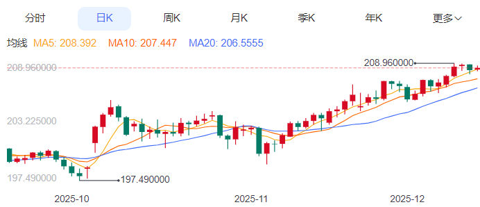 价格可能会形成暂时的修正交易,但看涨通道水平内的稳定性以及在206.90水平形成额外支撑的持续,这些因素支持重新开始看涨攻击的机会,预计将通过记录新的收益超越当前的阻力,可能会延伸到209.30和209.75。