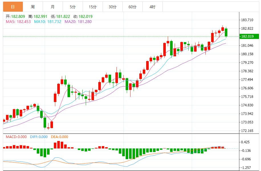 今日预期交易区间:为181.70至182.70。