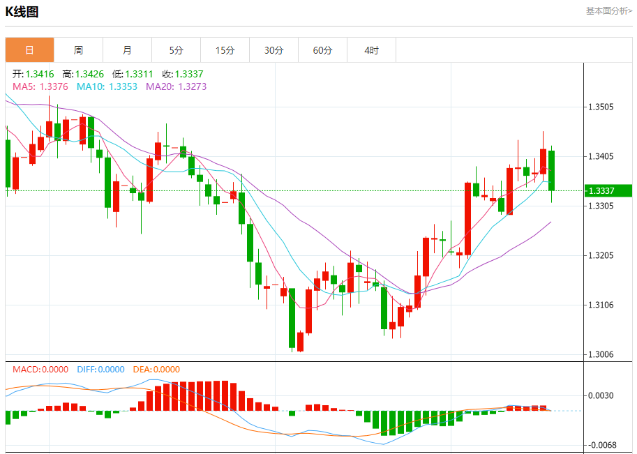 周三盘中,英镑/美元报1.3339,跌幅0.61%。