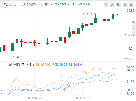近期美国通胀疲软和就业报告冷淡,推动市场预期明年美国央行将至少两次25个基点的降息。这与日本银行(BoJ)整体更鹰派的转向形成对比,短期内对美元构成一定抛售压力。