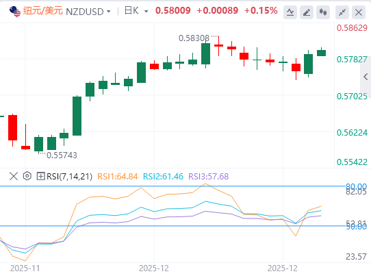 新西兰储备银行(RBNZ)在11月会议上将官方现金利率(OCR)下调25个基点(bps),至2.25%。新西兰央行表示,未来的利率变动将取决于经济和通胀前景,分析师认为降息周期目前可能已经结束。这反过来可能为新西兰兑美元提供一定支撑。