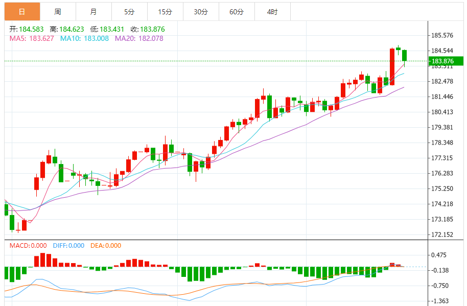技术上,欧元/日元(EURJPY)汇率达到主要目标位184.90,形成了强阻力,开始形成看跌修正浪,并在183.75附近收盘,预示着当前周期交易中开始积累一些收益。