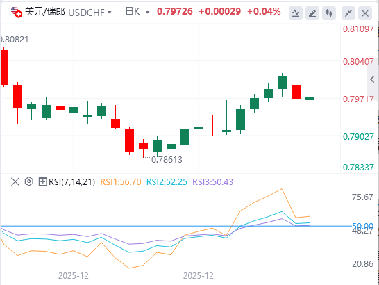 1月13日,周二欧洲早盘,美元/瑞郎连续第二天下跌,交易约0.7970。随着地缘政治紧张局势和美联储独立性担忧,瑞士法郎(CHF)获得避险需求支持,货币对贬值。