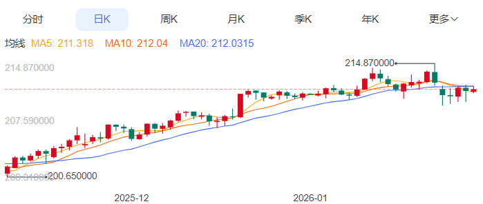 周五,英镑/日元上涨0.10%至211.64附近。