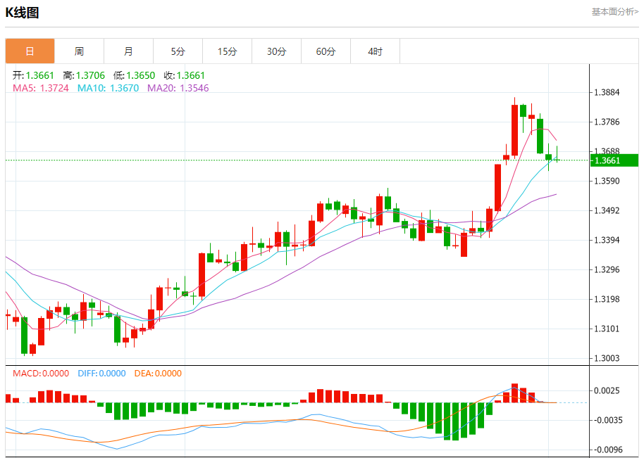 ÖܶþÅÌÖУ¬Ó¢°÷/ÃÀÔª±¨1.3661£¬µø·ù0.01%¡£