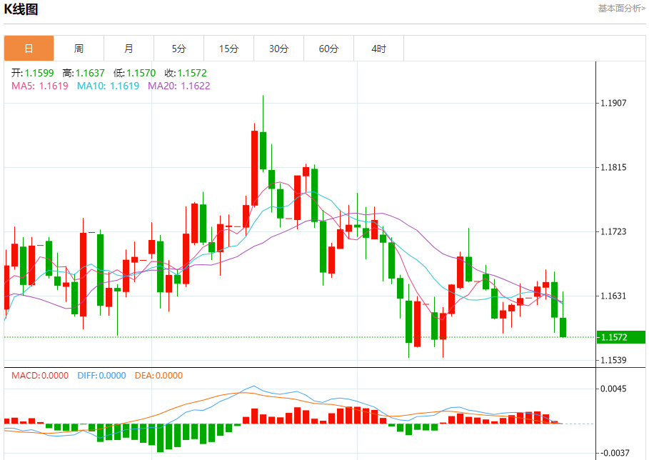 周四盘中,欧元/美元报1.1572,跌幅0.25%。 今日分析:在1.1595之上,看涨,目标价位为1.1635,然后为1.1665。 技术点评:RI技术指标缺乏下降动能 支撑位:1.15951.15751.1550 阻力位:1.16901.16651.1635 (亚汇网编辑:冰凡)