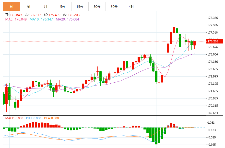 周四,欧元/日元上涨0.16%至176.226附近。 欧元方面,欧洲央行管理委员会成员JoachiNagl表示,目前没有理由改变利率,并警告称通胀的一些组成部分仍需持续警惕。这位德国央行行长在接受采访时表示,现在讨论未来几个月借贷成本将如何变化还为时过早,但尽管服务通胀“具有粘性”,但消费者价格的涨势几乎与2%的目