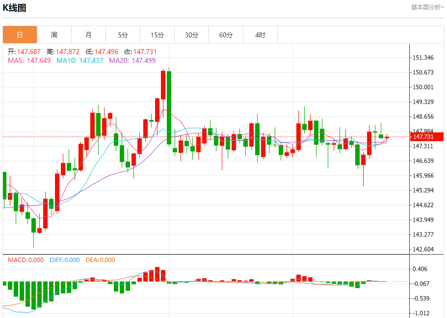 周二盘中,美元/日元报147.761,涨幅0.03%。 今日分析:在148.05之下,看跌,目标价位为147.45,然后为147.20。 技术点评:即使我们不能排除持续技术反弹的可能性,其时间长度上,应该是有限的。 支撑位:147.45147.20146.90 阻力位:148.60148.35148.05 (亚汇网编辑:冰凡)