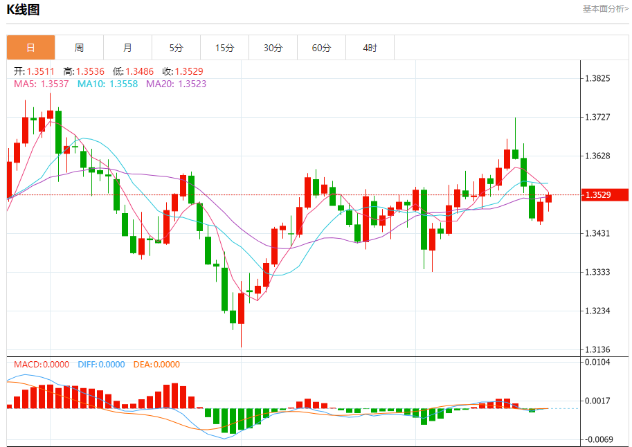 周二盘中,英镑/美元报1.3526,涨幅0.10%。 今日分析:在1.3480之上,看涨,目标价位为1.3535,然后为1.3560。 技术点评:超短线(当日内)技术指标运行趋势复杂,应谨慎操作。 支撑位:1.34801.34501.3420 阻力位:1.35801.35601.3535 (亚汇网编辑:冰凡)