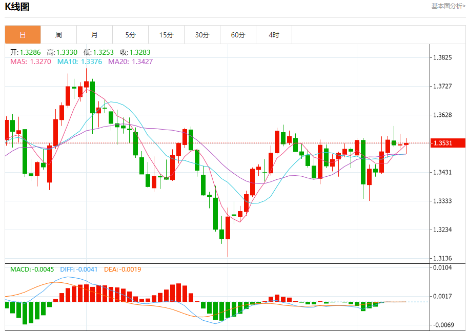 周四盘中,英镑/美元报1.3555,涨幅0.22%。 今日分析:看跌,在1.3569之下。 技术点评:RI技术指标小于中性区域50。ACD技术指标处在其信号线之下看空。配置为负。此外,价位低于其20天及50天移动平均线(分别位于1.3539和1.3533)。 支撑位:1.34521.34271.3403 阻力位:1.36351.36101.3569